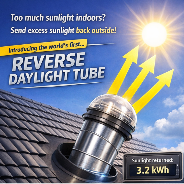 1er avril – Techcomlight est fier de présenter une innovation révolutionnaire dans le domaine de la lumière naturelle : le premier tube de lumière du jour inversé au monde. Cette innovation permet de rediriger facilement l'excédent de lumière naturelle vers l'extérieur.